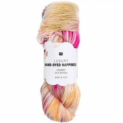 435krLuxury Hand-Dyed Happiness Chunky er et håndfarget merinoull garn fra Rico.