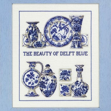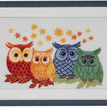 Kalender med en moderne stil og mange ulike motiv er brodert med Moulinegarn.