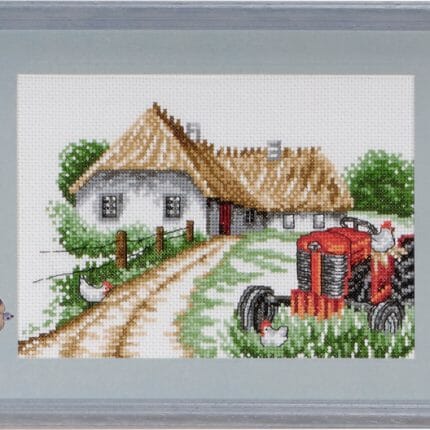 Herlig bilde av Ku som speiler seg, broderes på hvit Aida 5,4/14″ med Mouline garn.