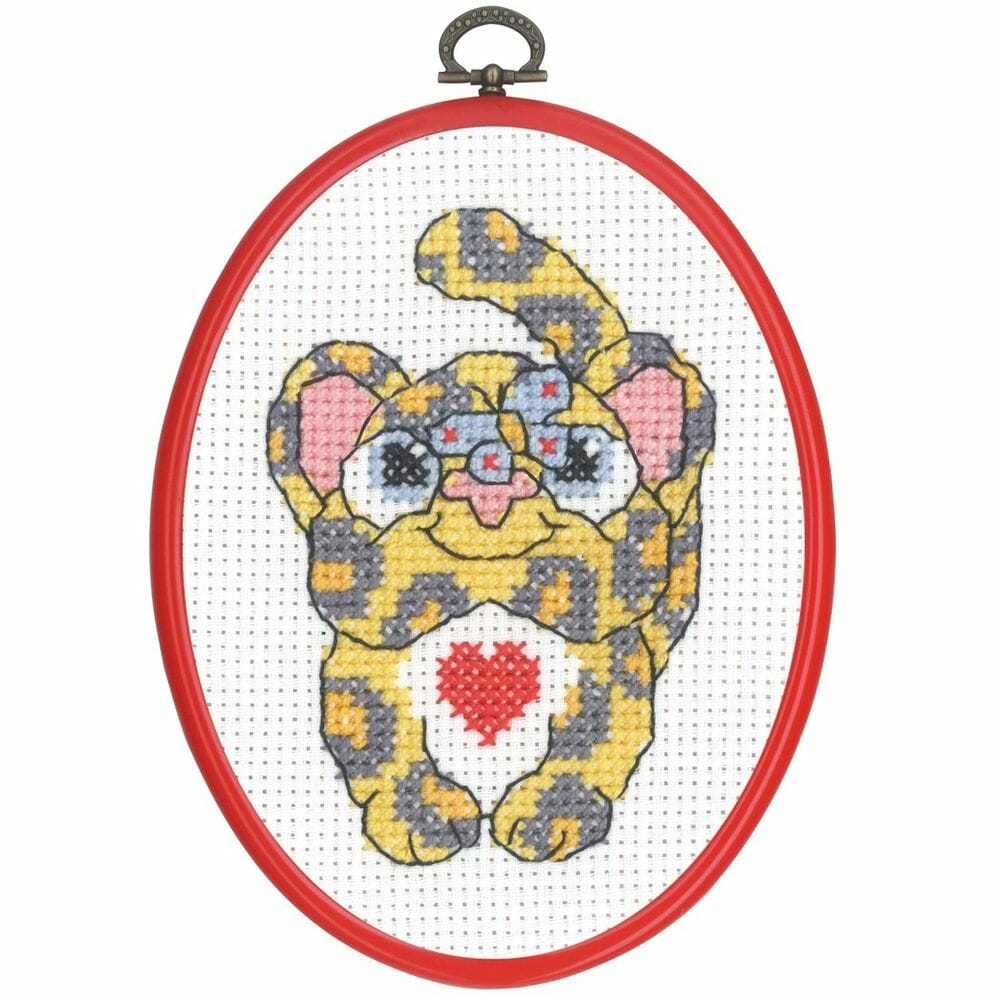 Leopard barnebroderi brodert på hvit Aida 3,2/8” med Pearl garn.