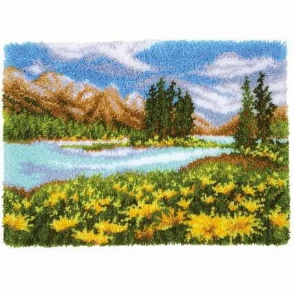 Edderkoppspinn i blomstereng brodert på Lin 13/32″ med Mouline garn.