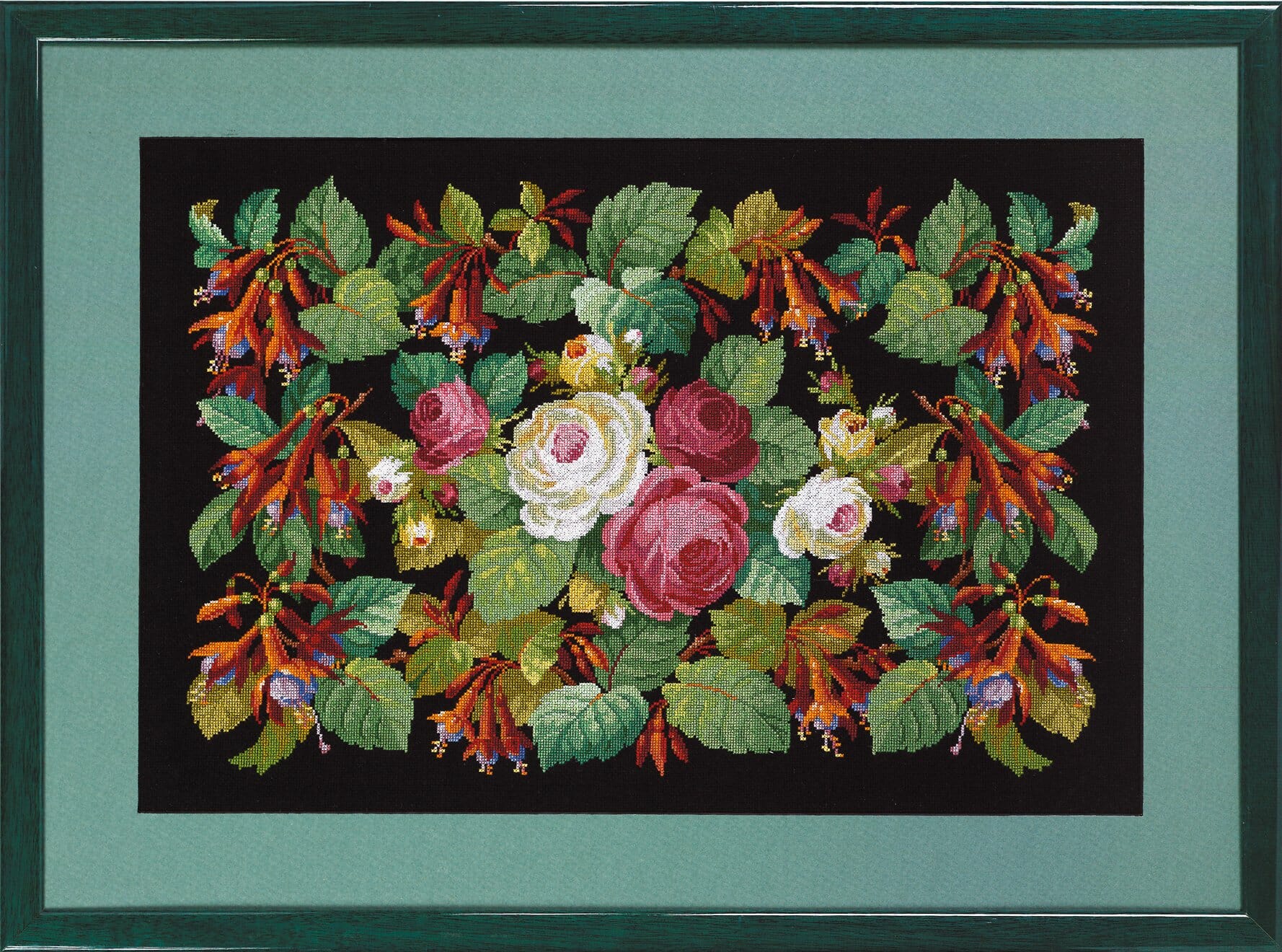 Hjem BRODERING Broderier Bilder/Klokkestrenger Roser og Fuschia