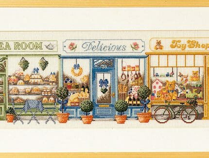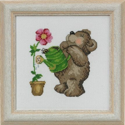 Løper med skogens dyr, broderes på Ivory Aida 5,4/14″ med Mouline garn.