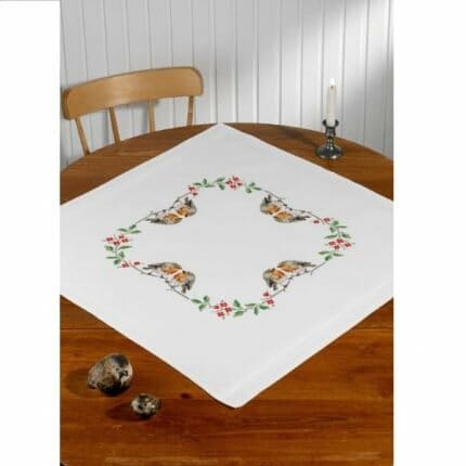 Nydelig høst duk brodert på hvit Aida 4,4/11″ med Mouline garn.