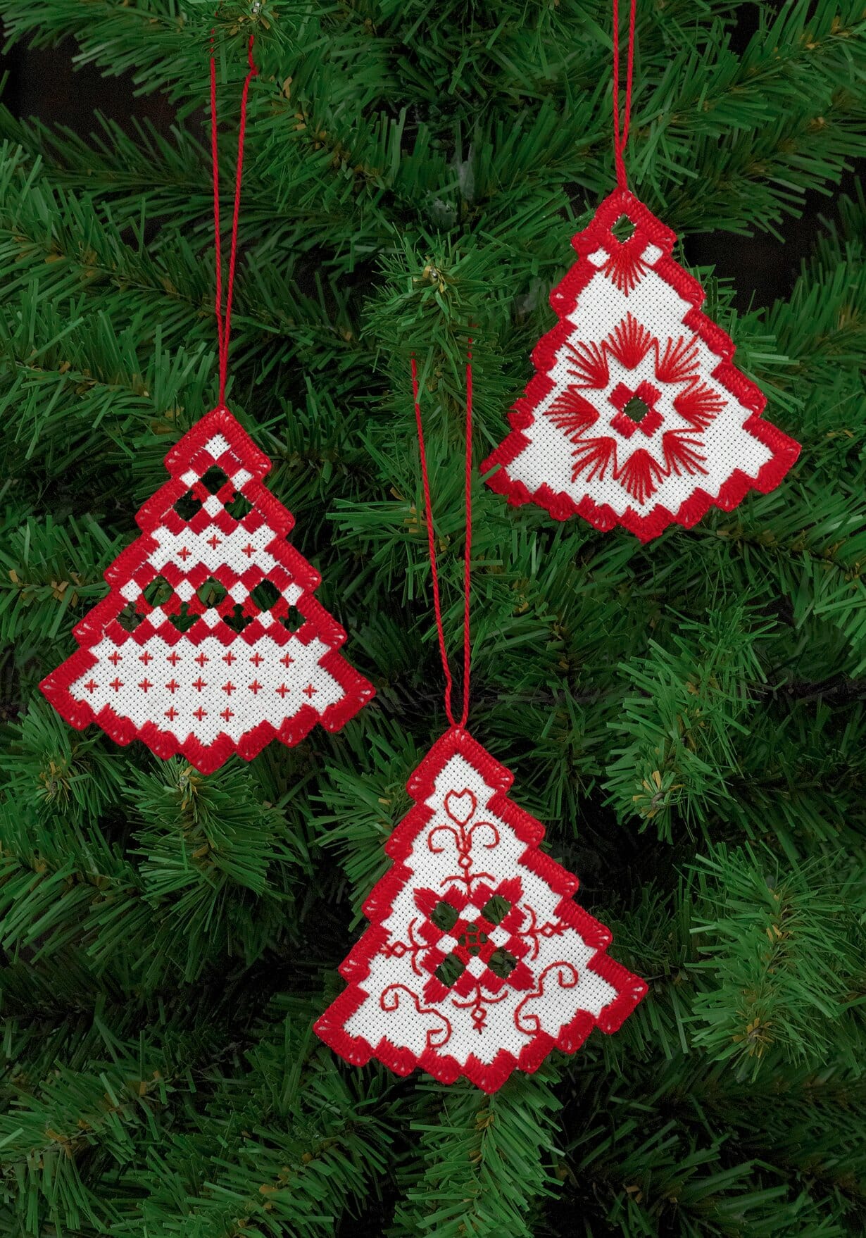 Hjem BRODERING Broderier Høytider Julebroderier Hardanger juletræ rødx3 7,5×8