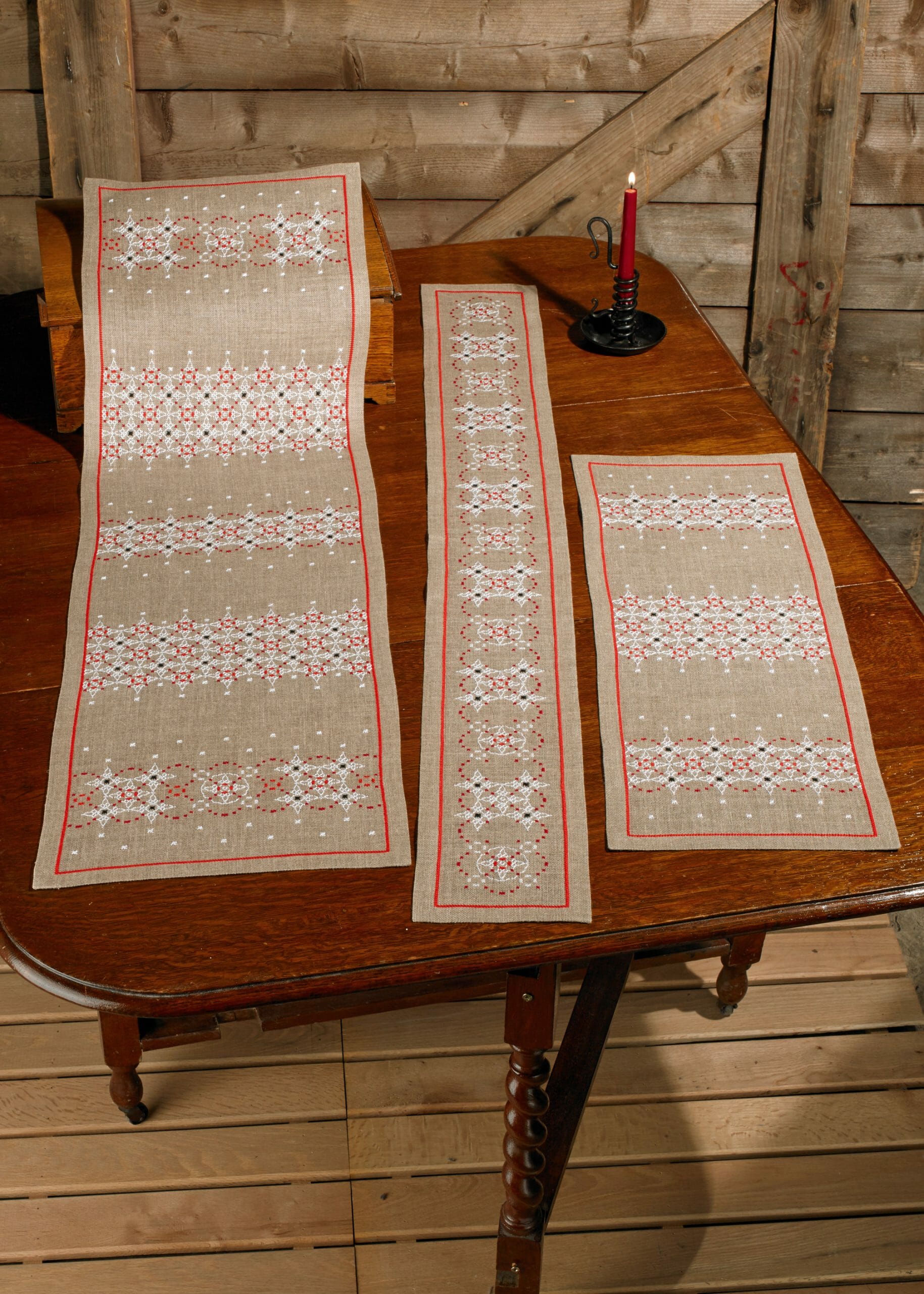 Tradisjonell Julemønster løper, broderes på lin 18″/8 med Perlegarn.