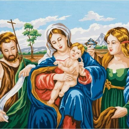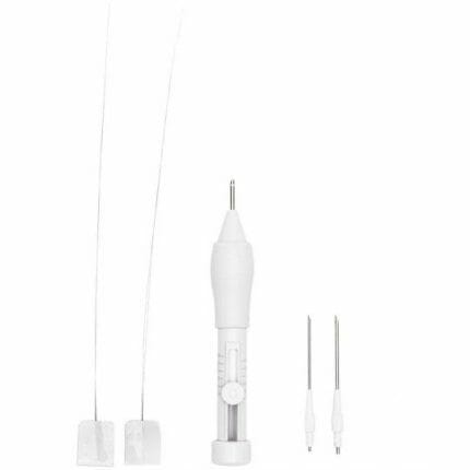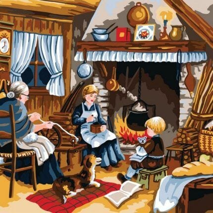 Alle våre julekalendere inneholder garn, stoff, motivsplansje, kalenderringer og en brodernål.