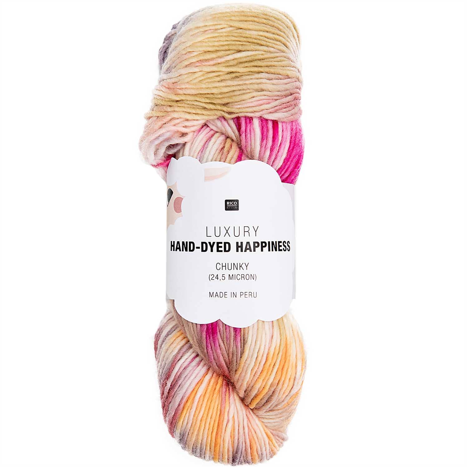 Luxury Hand-Dyed Happiness Chunky er et håndfarget tykt ullgarn fra Rico.