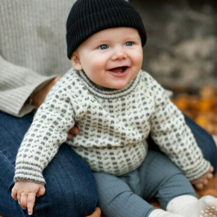 Garnpakken inneholder oppskrift og garn til valgt størrelse.