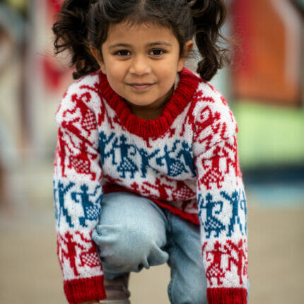 Garnpakken inneholder oppskrift og garn til valgt størrelse.